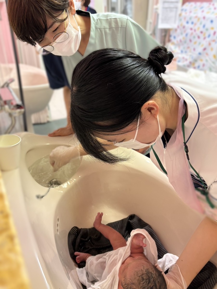 優しく見守ってもらって、赤ちゃんの沐浴を実施!赤ちゃん可愛いくて、気持ちよさそうにしていて癒されます。