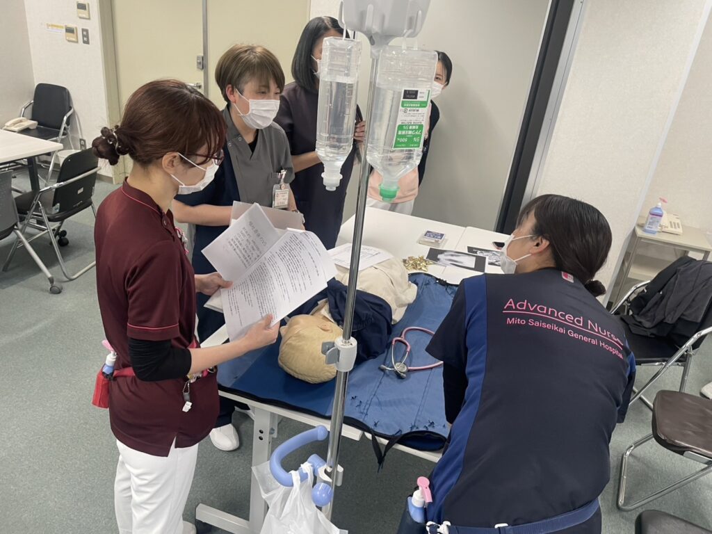 今回の特定行為研修では、実際に起こりえる場面を想定した3症例のシナリオを用いたシミュレーション研修を実施しました。
