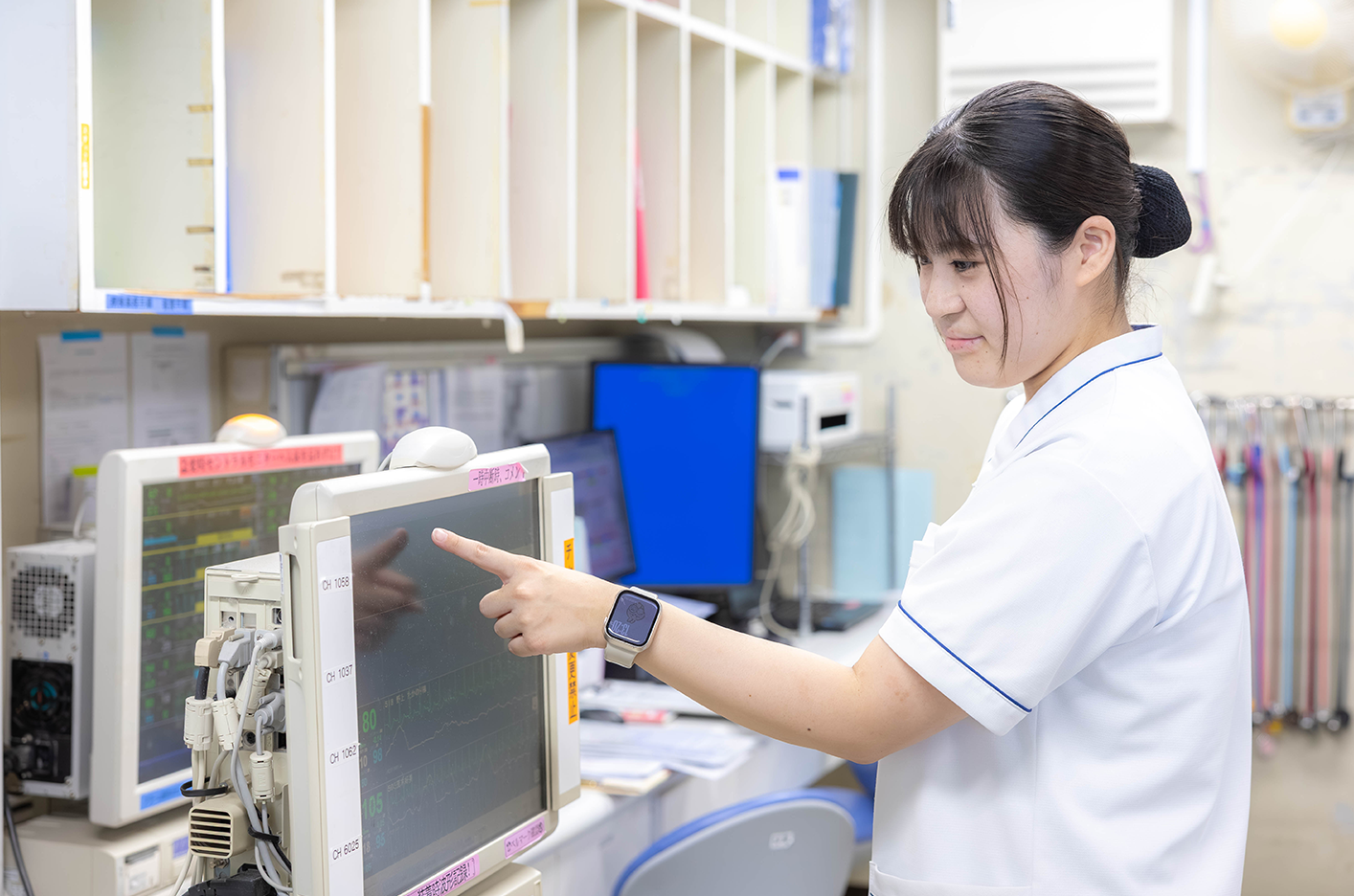 当院は3次救急を担っており、急性期から慢性期までの一貫した看護を提供することが出来る環境が整っていること、様々な診療科があるためより多くの知識と技術を習得することが出来ると考え入職を決めました。また、院内で特定行為研修を受講できることや認定看護師資格取得支援制度があるためキャリアアップをすることが出来る所に魅力を感じました。