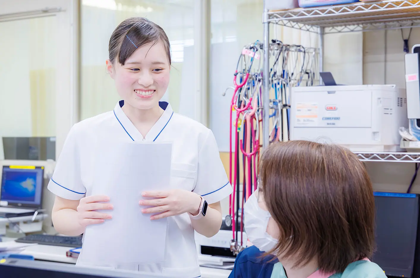 学生時代に実習させていただくことが多く、一人一人の患者様に優しく声をかけ寄り添う看護師さん方の姿に憧れて入職を決めました。また、院内教育や新人研修など自立に向けた知識・技術の習得、キャリアアップのためのサポート体制が整っている事に魅力を感じました。