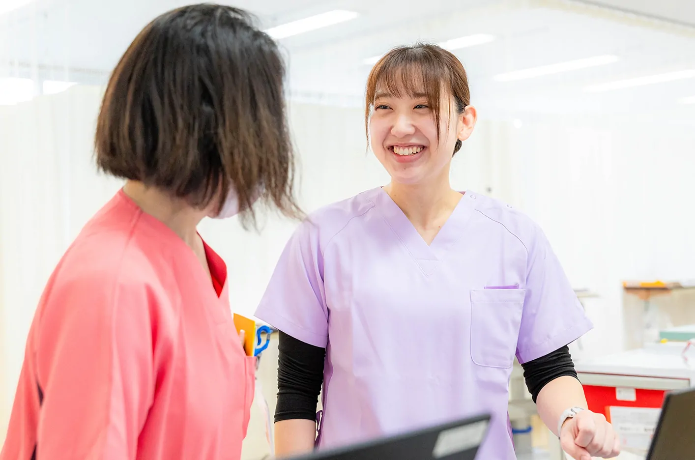 看護学生時代に当院の奨学金貸与制度を利用していたことが入職を決めた一番の理由です。実習の病院でもあったため、病院の雰囲気など知っていたのでここで働きたいと思いました。