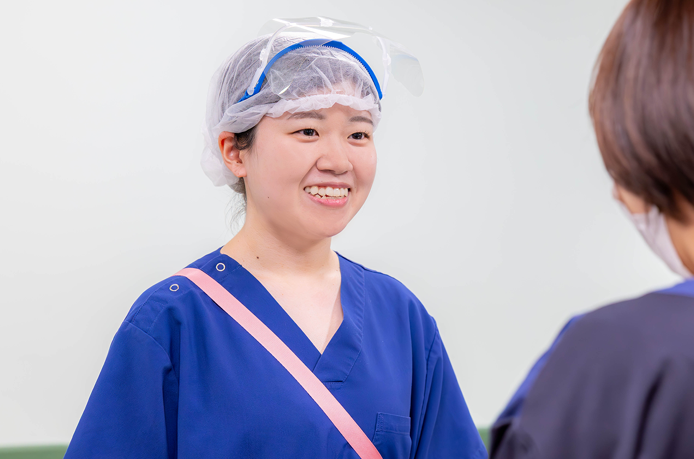 私は現在、手術室に勤務しています。病棟とは違う環境で慣れないことが多かったのですが、プリセプターさんをはじめ、先輩方にサポートしていただきながら毎日業務に取り組めています。